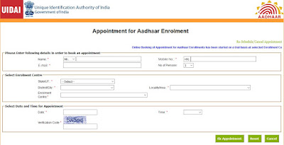 You can directly visit the Aadhaar Enrollment Center or else you can even take an Appointment for Aadhaar Enrolment Online by clicking here but you should note that if the Aadhaar Center located in your area accepts Online Appointments and if it accepts Online Appointments you can carry on to take Online Appointment by filling the form Appointment for Aadhaar Enrolment and fix an appointment.